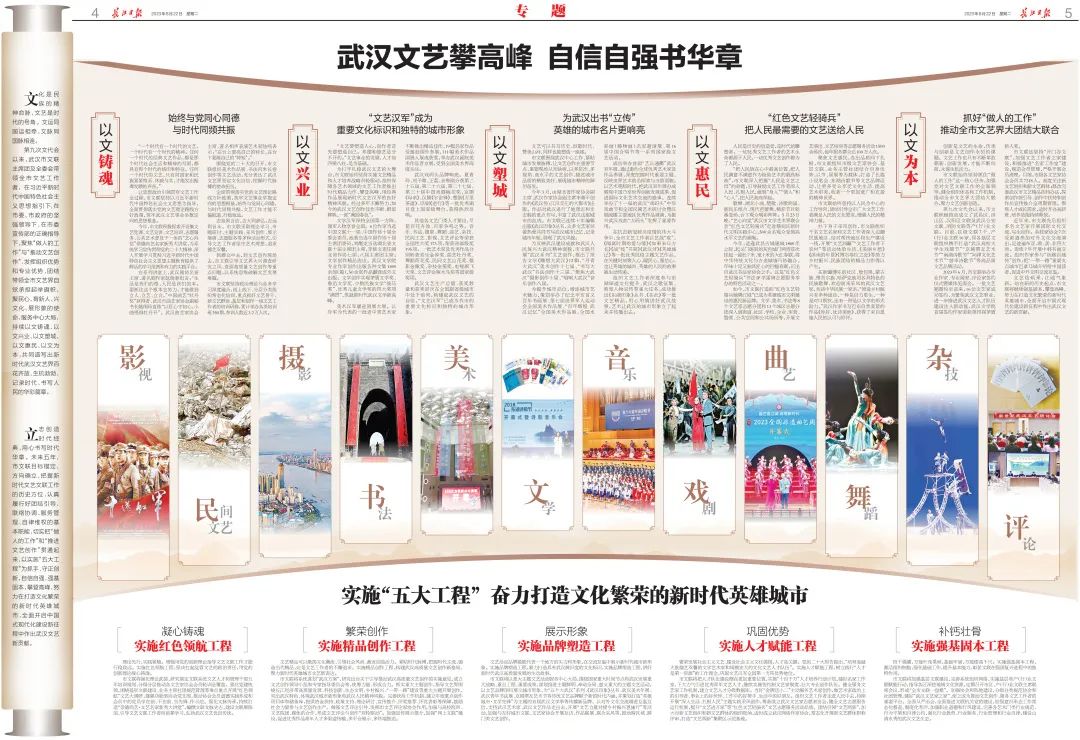 市文联围绕武汉中心工作、紧贴城市发展脉搏,让文艺创作在重要节点、重要现场从未缺席,以多层次、多视角、高水平的文艺创作,描述城市品质的精致美好、展现城市精神的踔厉奋发。