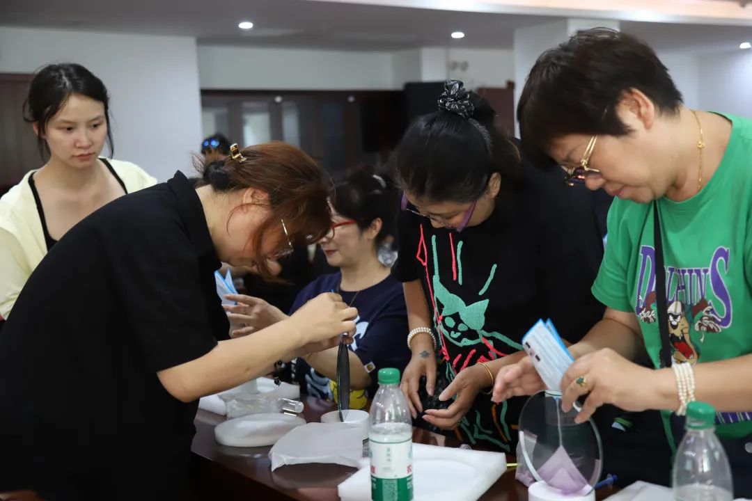随后,区聋协主席张小妮通过多媒体演示,系统解析流沙画的科学原理与艺术表现手法。学员们按照“分层铺沙—渐变过渡—创意造型”的步骤,以沙为“画笔”,相框为“画卷”,在双层玻璃构成的立体画布上精心构筑艺术世界。有的用蓝白沙粒堆叠出海浪效果,有的用红黄渐变模拟落日余晖。当最后一滴封层胶缓缓凝固,一件件层次分明、风格迥异的流沙画作仿佛被赋予了生命,缓缓流动,相互交融。大家置身于曼妙图景之中,享受静止与流动交替的变换之美。