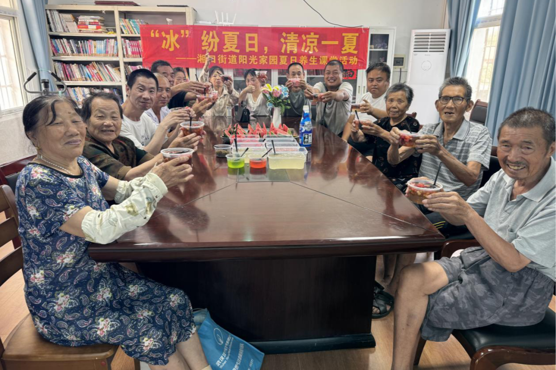 7月8日,湘口街道阳光家园开展“‘冰’纷夏日,清凉一夏”夏日养生课堂活动。活动现场,社工为10余名残疾人详细讲解中暑预防与救治知识,传授饮食、生活、精神调养方法,并带领大家亲手制作冰粉,在趣味实践中学习养生,驱散暑热。