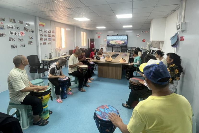 7月4日,东荆街道阳光家园第二期非洲鼓教学公益活动火热开启。20余名学员在志愿者视频教学与现场老师一对一的指导下,学习热门歌曲《当离别开出花》的鼓点打法。从分解练习到成功合奏,铿锵的鼓点不仅提升了学员的手脑协调性,更帮助他们打破心理隔阂,增强了社交自信。“非洲鼓让我找到了‘发声’的另一种方式”,学员张先生道出了音乐疗愈的魔力。
