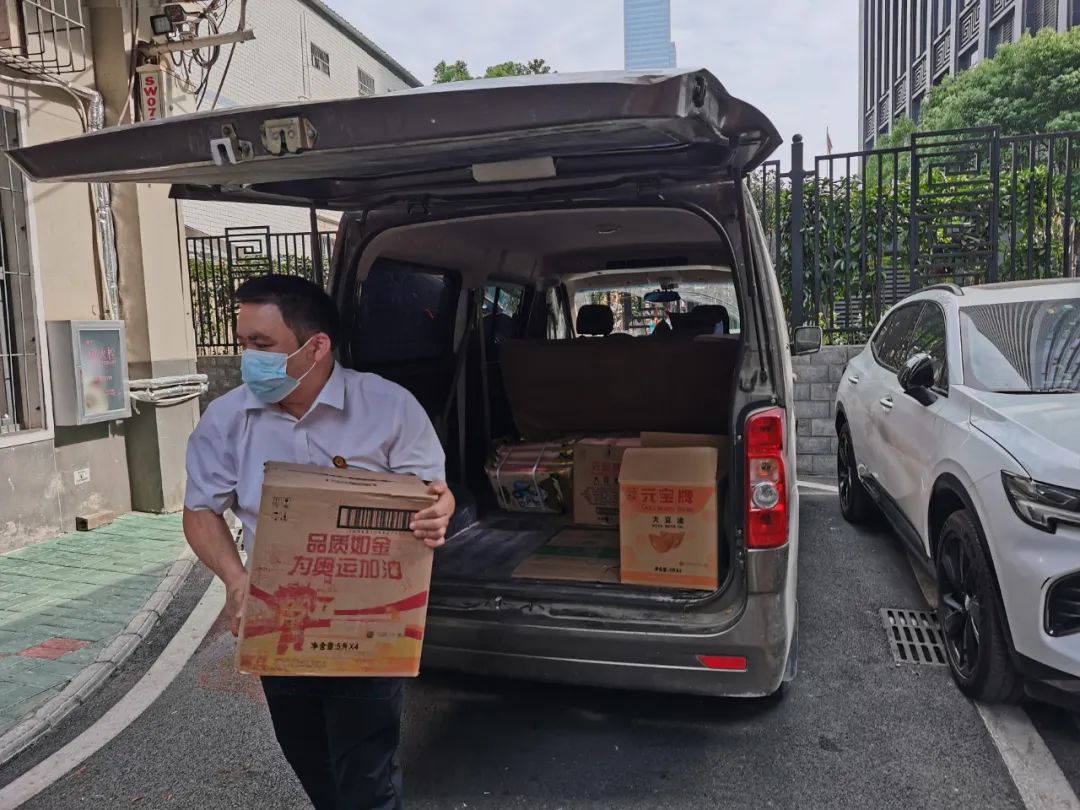 看到袁家社区党员群众服务中心门口堆积如山的爱心物资和穿梭其间搬运物资的慰问人员,社区工作者和受助人员都深受感动。