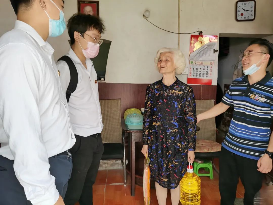 在袁家社区居委会的带领下,大家先后一起入户探望了孤寡老人、低保残疾家庭和困难家庭,亲手为他们送上了大米和食用油,表达了对他们的殷切慰问。