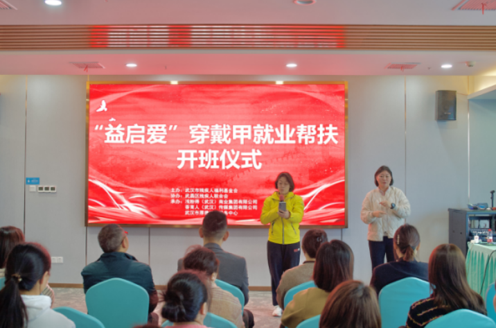 3月26日,武汉市残疾人福利基金会、武昌区残疾人联合会携手浅粉得(武汉)商业集团有限公司、荟育人(武汉)传媒集团有限公司及武汉市厚德济困服务中心举办了“益启爱”残疾人订单式就业创业帮扶开班仪式活动。