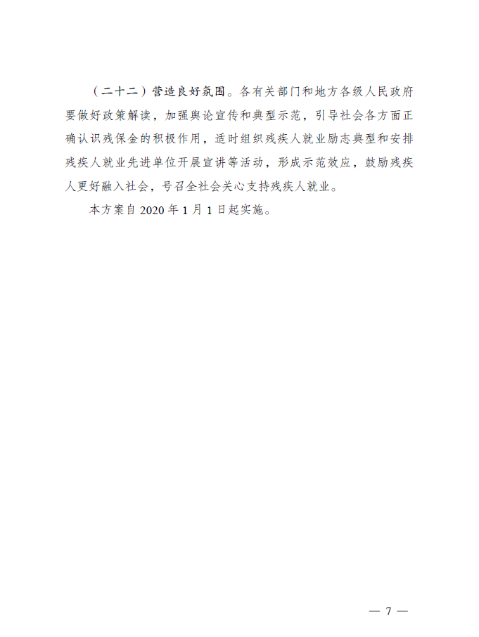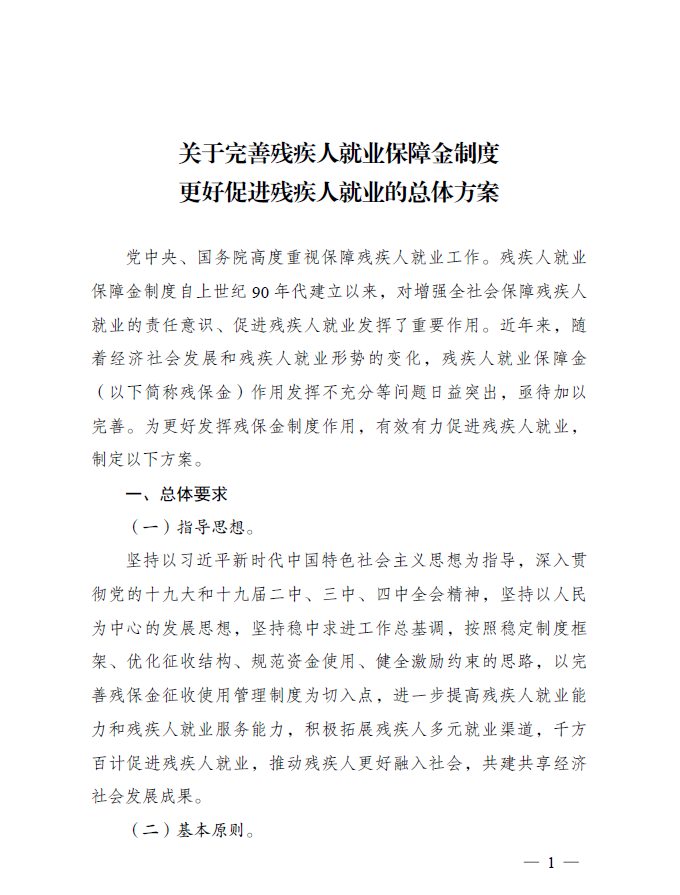 关于完善残疾人就业保障金制度 更好促进残疾人就业的总体方案